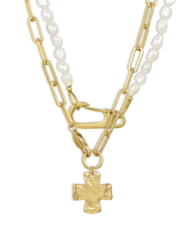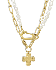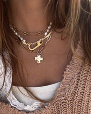 Chunky Cross and Pearl Lock Necklace Set